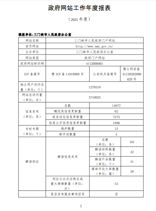 三门峡市人民政府门户网站2021年工作年度报表1.pdf