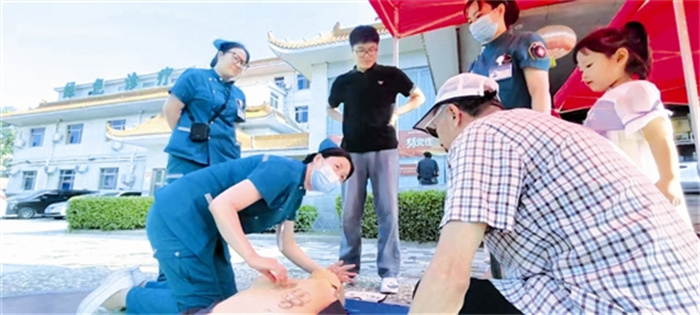 为帮助更多市民掌握急救技能,提高互救、自救的能力,近日,三门峡市中医院在该院南广场开展了急救技能科普和多学科联合义诊活动。活动现场,急诊科医护团队现场演示了心肺复苏等操作方法,耐心细致地向市民讲解操作重点步骤,并手把手指导市民体验。