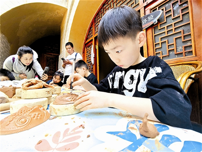 5月4日,小朋友们走进陕州地坑院景区,自己动手制作澄泥砚,沉浸式感受古法制砚的独特魅力。
