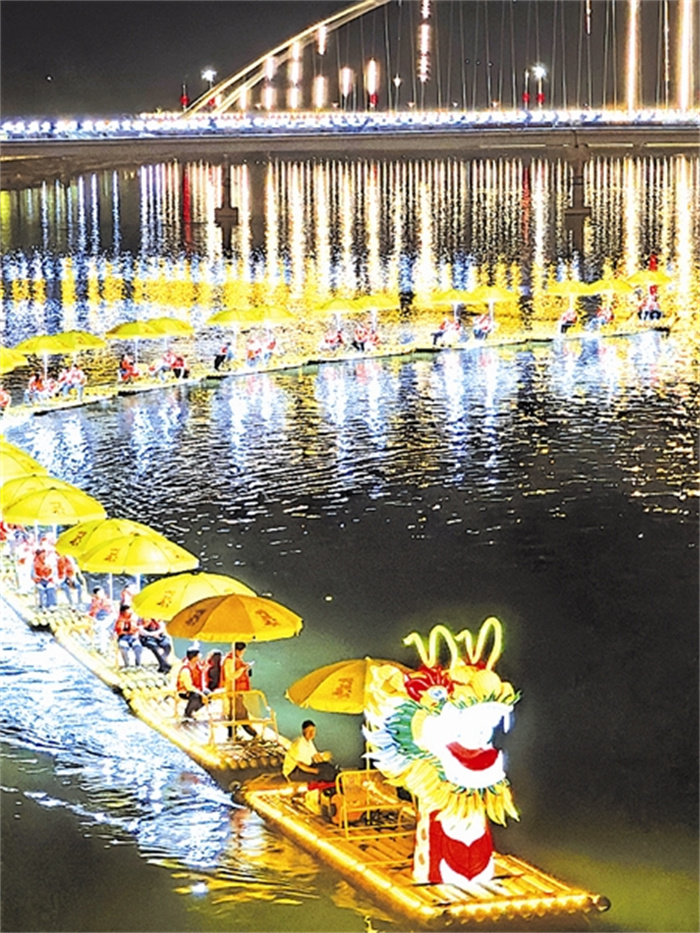 5月31日端午夜,市区青龙涧河热闹非凡,龙舟蜿蜒水面,划出点点流光,仿古游船悠然穿行,岸边夜市热闹红火,传统民俗与现代生活交融,绘就璀璨节日画卷。