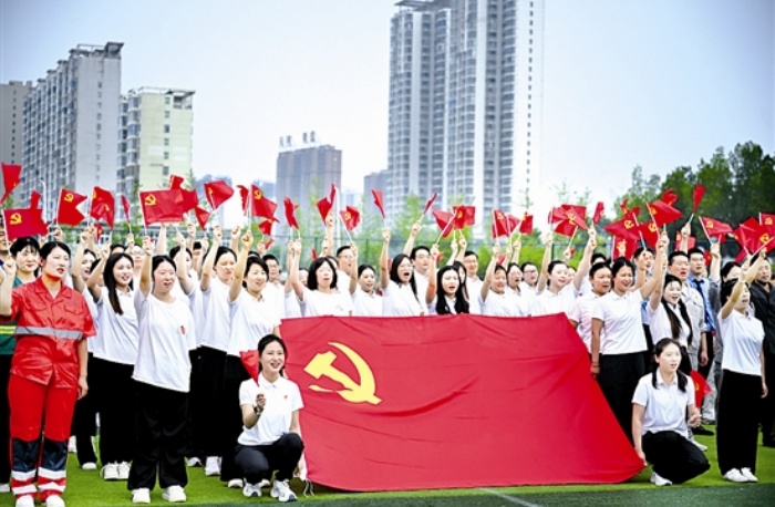 6月27日,义马市开展“永远跟党走奋进新时代”主题活动,该市机关、企事业单位及基层群众深情唱响经典歌曲,展现义马干部群众在党的坚强领导下昂扬向上的精神风貌,表达了坚定不移跟党走的决心信念。