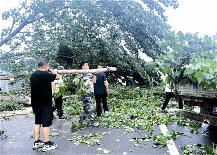 7月29日,受强降雨天气影响,市区黄河西路出现树木倒伏、断枝情况。经济开发区建设管理部迅速组织工作人员进行抢险处置,开展清理搬运工作。