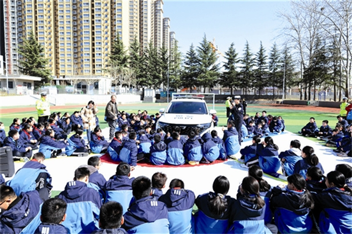 连日来,三门峡市交警支队组织警力,深入市区的宏江幼儿园、十一局幼儿园、市育才中学和市实验高中,通过开展知识宣讲、文艺表演、警示教育等活动,全方位增强师生的交通安全意识。图为市育才中学学生参与汽车盲区体验,直观感受汽车盲区带来的安全隐患。