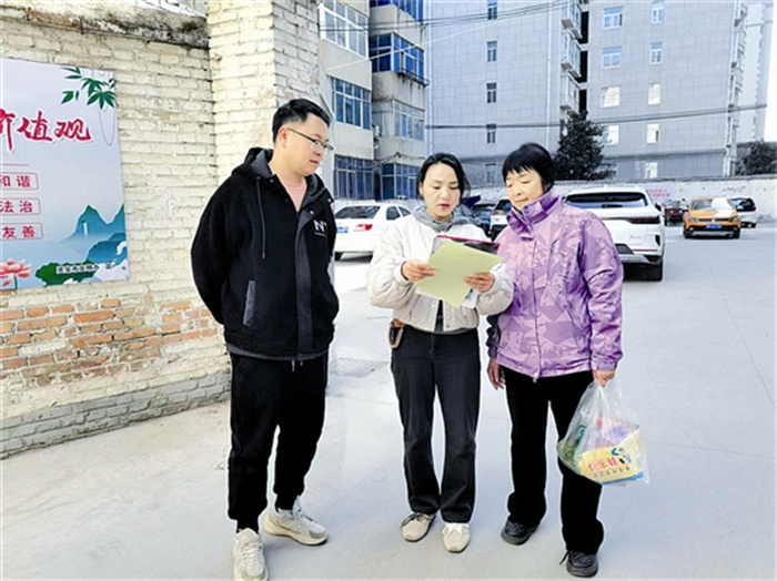 为进一步提升居民反诈意识,守好群众“钱袋子”,连日来,灵宝市城关镇以“贴近群众、精准施策、群防群治”为原则,从宣传触角延伸、重点人群守护、锻造反诈尖兵三个方面发力,用“土办法”解决新问题,以“小切口”推动大平安,全力营造“全民识诈、人人防骗”的浓厚氛围,筑牢反诈“最后一米”防线。图为城关镇长乐社区网格员向居民宣传反诈知识。