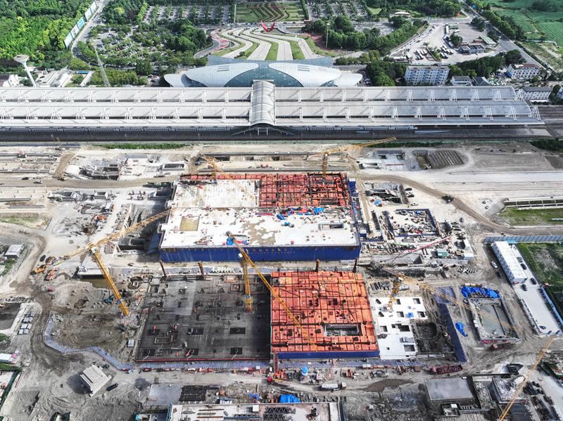 新建上海至南京至合肥高铁南通站站房施工稳步推进