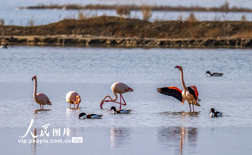 山西运城:火烈鸟欢舞盐湖湿地