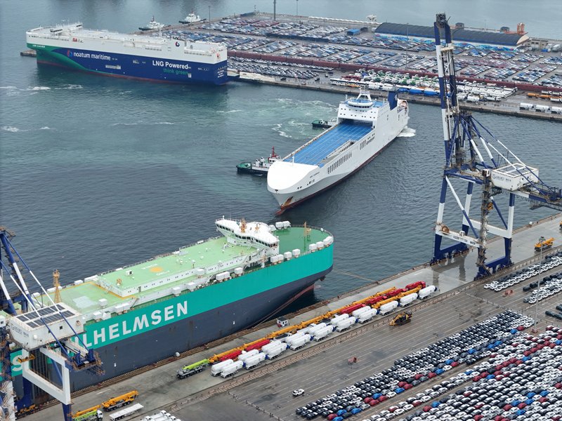 山东烟台:出口汽车装运忙