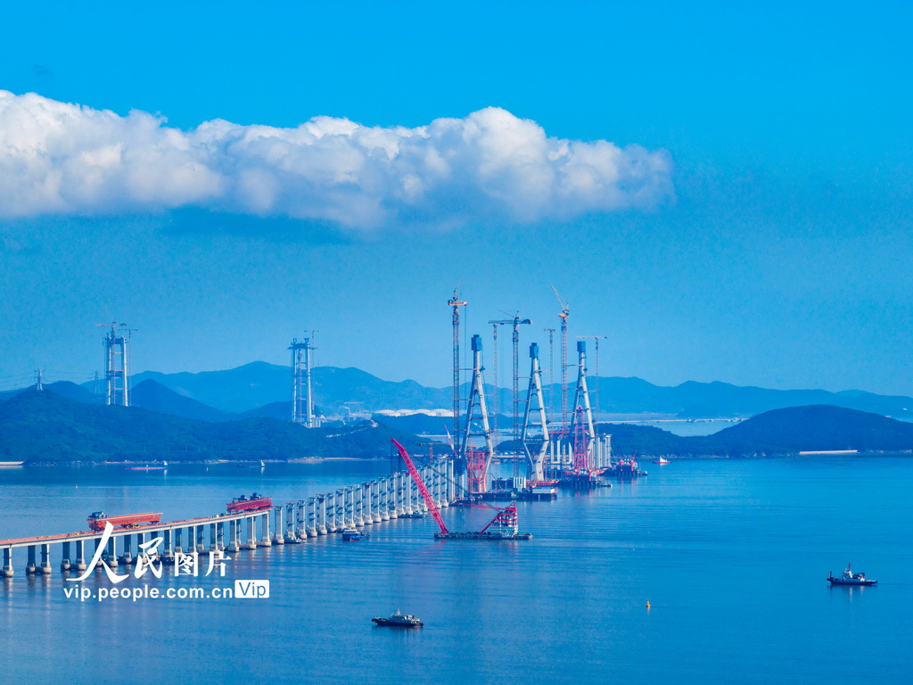 浙江:六横公路大桥二期工程舟山侧Q3主墩首片钢箱梁架设成功