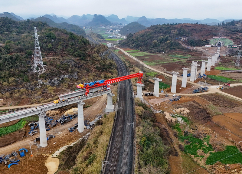 新建沪昆铁路至安六铁路联络线成功上跨沪昆铁路