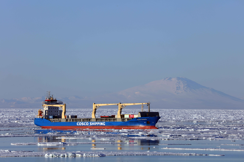“雪龙2”号与“永盛”号抵达秦岭站卸货