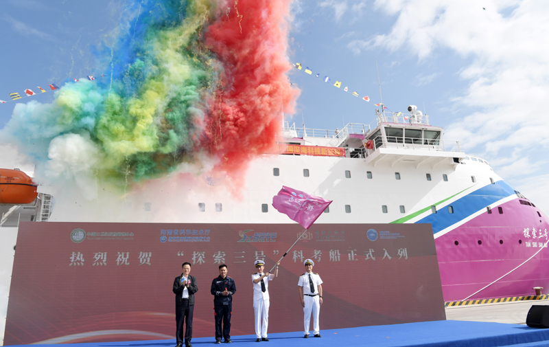 深远海多功能科学考察及文物考古船“探索三号”在三亚入列