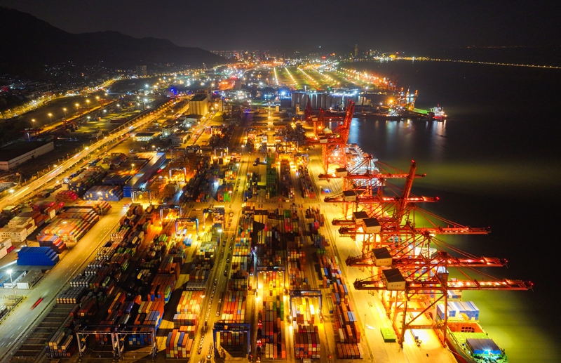 江苏连云港:港口码头夜以继日装卸忙