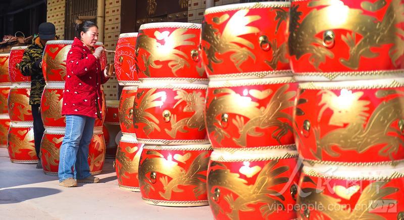 河南洛阳:传统手工制鼓生产忙