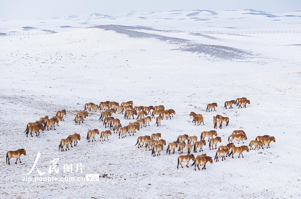 新疆昌吉:普氏野马雪地觅食