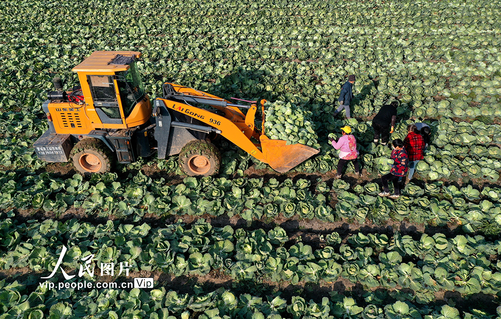 安徽蒙城:采收甘蓝 供应市场