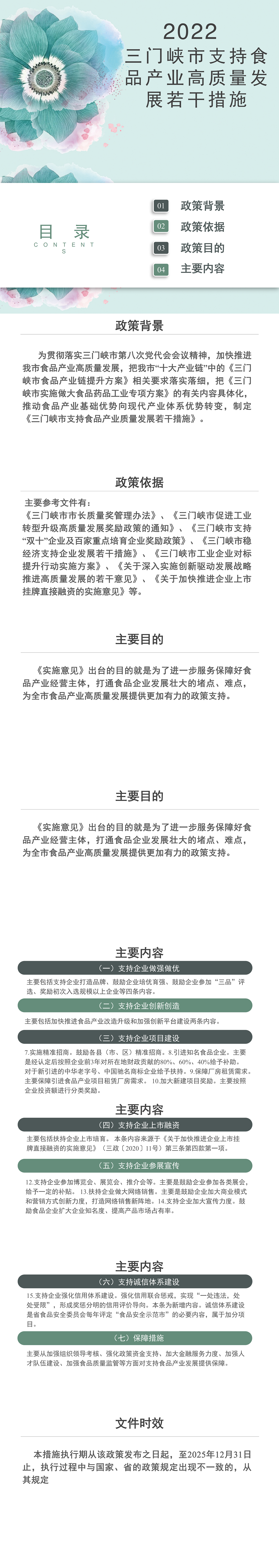 三门峡市人民政府办公室关于印发三门峡市支持食品产业高质量发展若干措施的通知