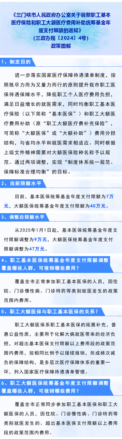 《三门峡市人民政府办公室关于调整职工基本医疗保险和职工大额医疗费用补助统筹基金年度支付限额的通知》(三政办规〔2024〕4号)政策图解