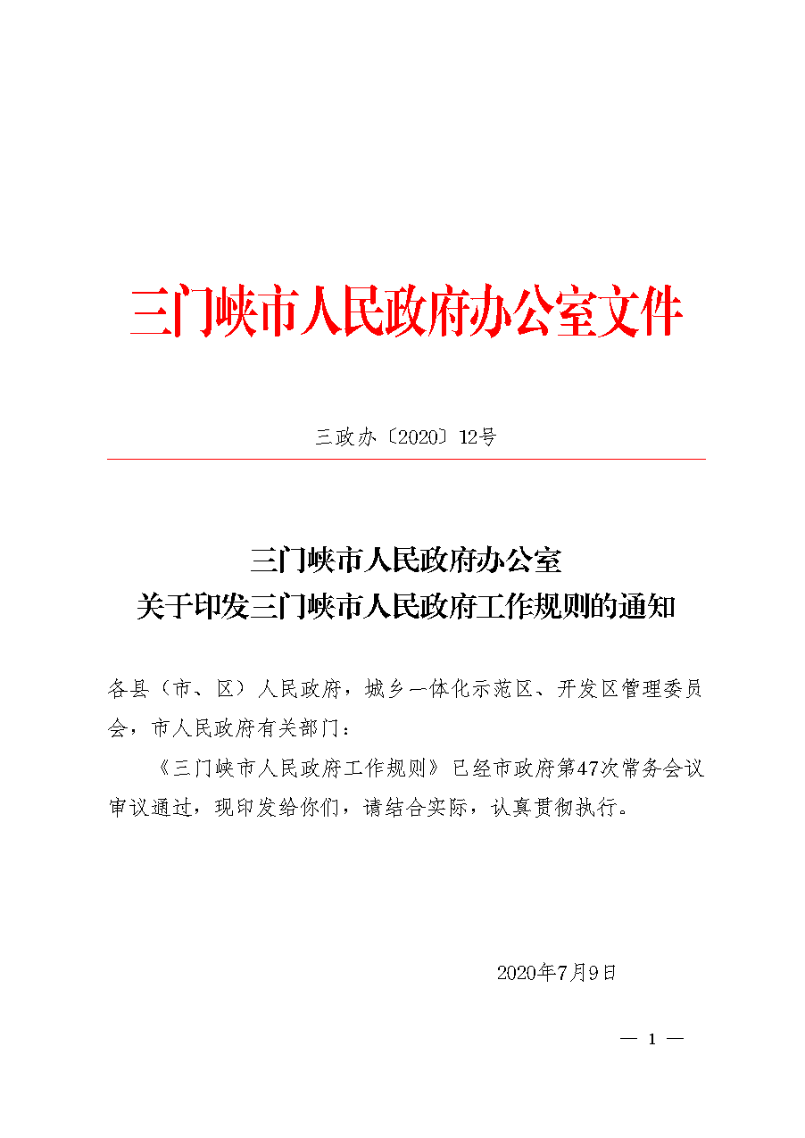 三门峡市人民政府办公室关于印发三门峡市人民政府工作规则的通知
