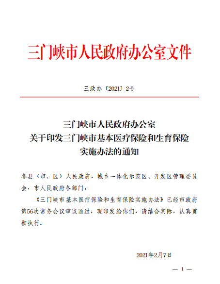 三门峡市人民政府办公室关于印发三门峡市基本医疗保险和生育保险实施办法的通知