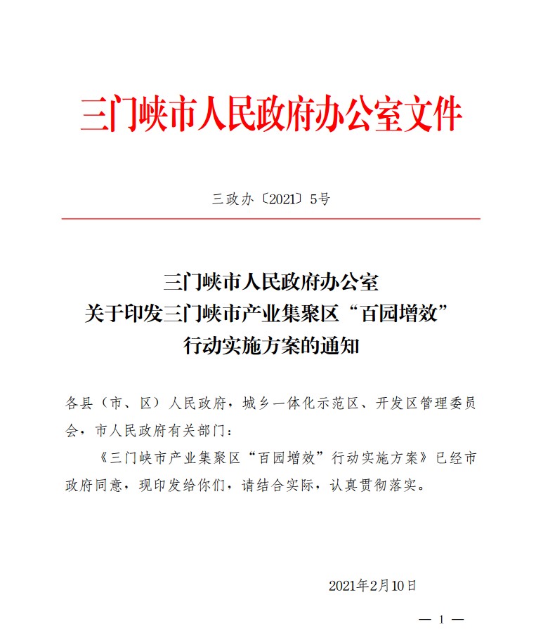 三门峡市人民政府办公室关于印发三门峡市产业集聚区“百园增效”行动实施方案的通知