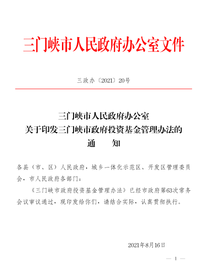 三门峡市人民政府办公室关于印发三门峡市政府投资基金管理办法的通知