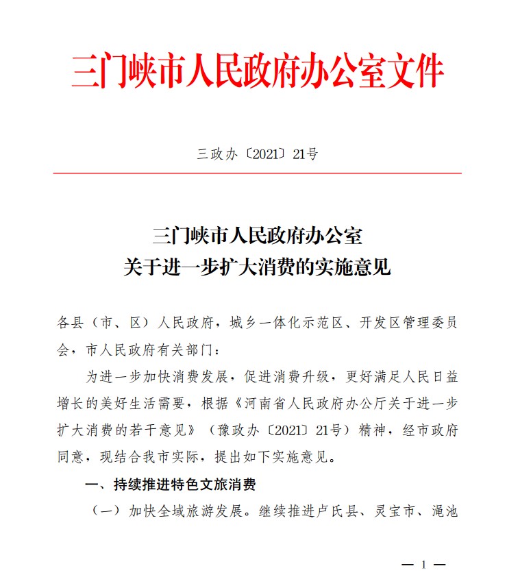 三门峡市人民政府办公室关于进一步扩大消费的实施意见