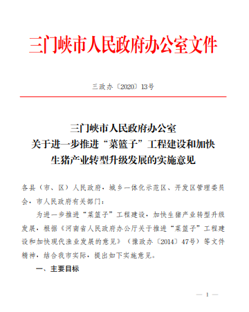三门峡市人民政府办公室关于进一步推进“菜篮子”工程建设和加快生猪产业转型升级发展的实施意见(三政办〔2020〕13号)